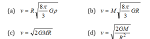 The escape velocity of an object from the earth depends upon the mass of the earth (M), its mean density (p), its radius (R) and the gravitational constant (G). Thus the formula for escape velocity is